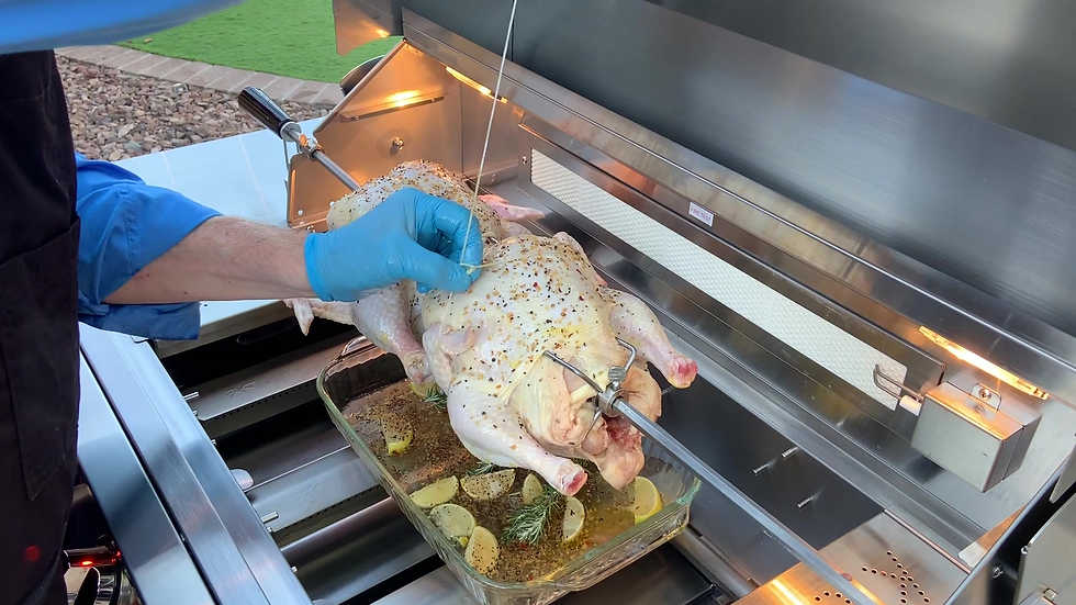 Rotisserie Kits for 4 and 5 Burner KoKoMo Grills. Rotisserie Kit includes the motor, spit rod with handle, two forks and counter balance. Allows you to roast beef roast, whole chickens and many more with the availability of your KoKoMo Grill. Heavy Duty Stainless Steel, 120V motor.